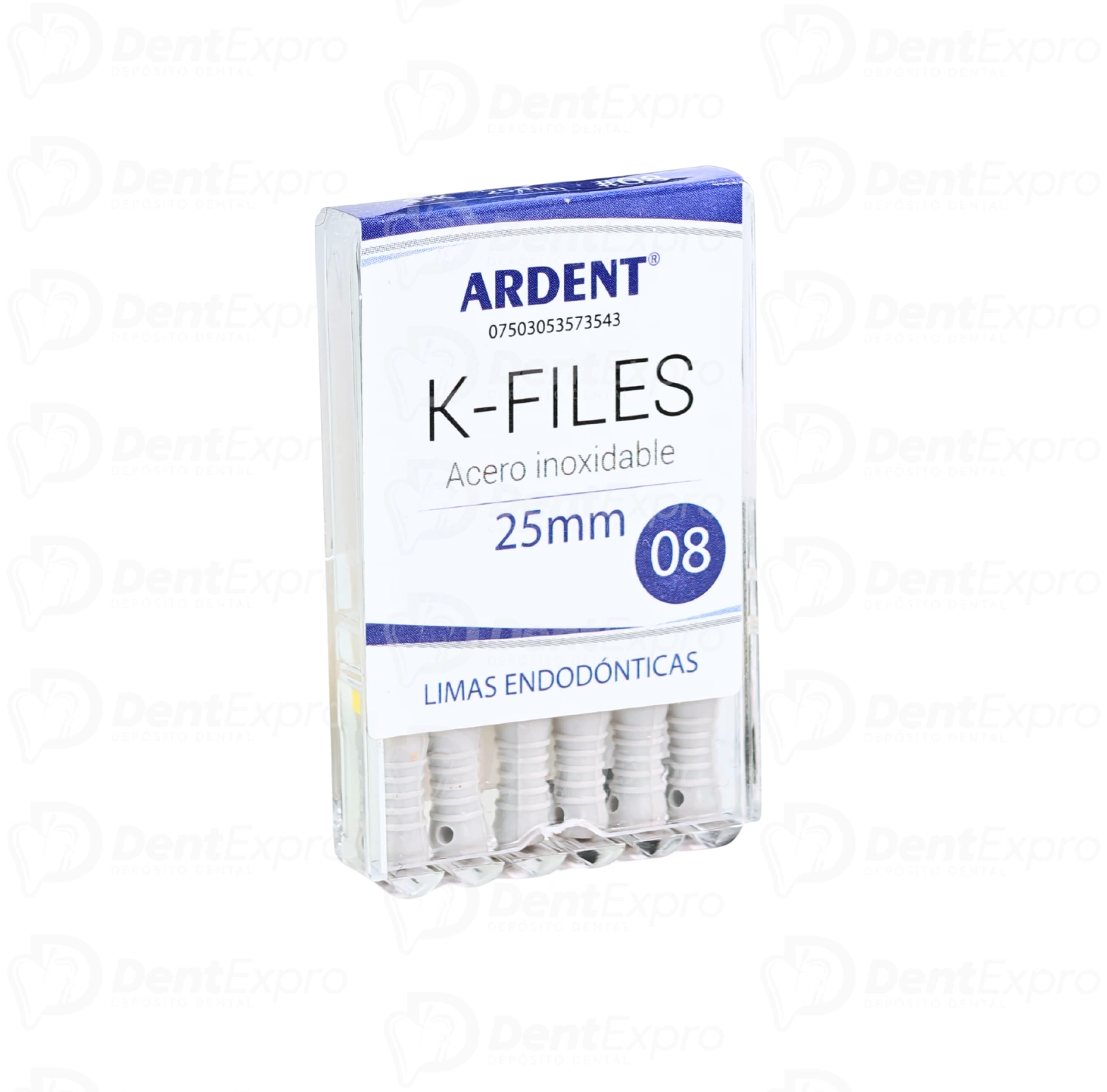 La Lima Endodoncia Ardent #8 25MM es un K-file manual de acero inoxidable diseñado para la exploración y permeabilización de conductos radiculares muy estrechos.